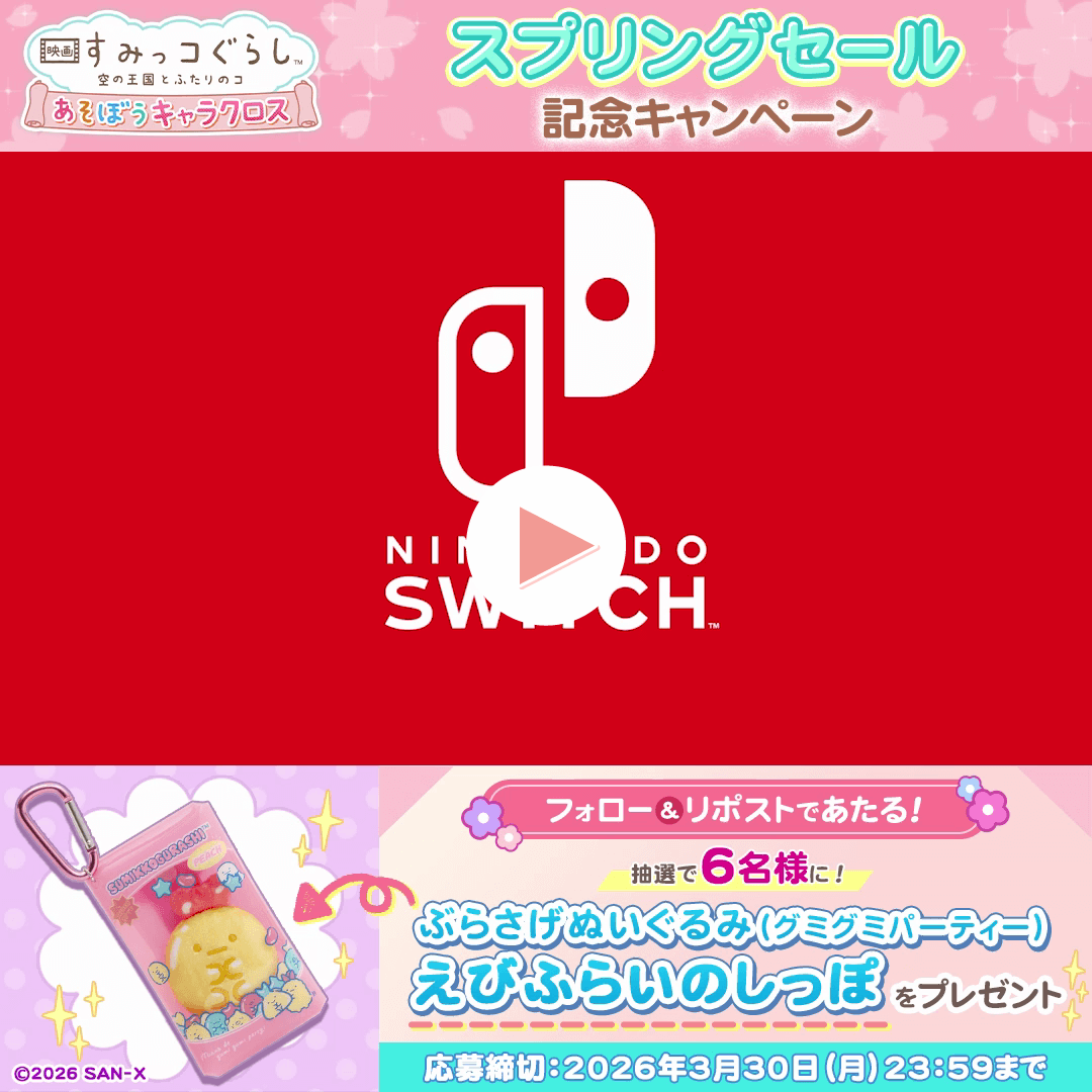Nintendo Switch™ソフト『映画 すみっコぐらし 空の王国とふたりのコ あそぼうキャラクロス』が「イマジニアスプリングセール2026」に登場!イマジニアセール初登場を記念し、「ぶらさげぬいぐるみ(グミグミパーティー・えびふらいのしっぽ)」を抽選で6名様にプレゼントいたします!